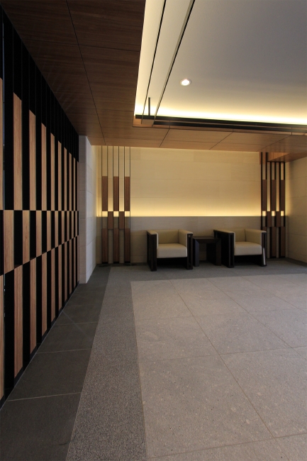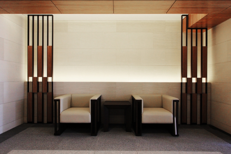 木とライムストーンの優しい質感とこれを縁取る黒いスチールのライン。 オーセンティックで、アールデコ的な懐かしさ感じるデザインは、安らぎを感じさせ、心癒される場所となるはずです。
