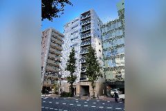 東京都中野区、新中野駅近くに建つ分譲マンション。歩道に面して店舗が連続する街並みの楽しさが途切れないよう、ヒューマンでナチュラルな建築の表情と緑を沿道空間に作りました。